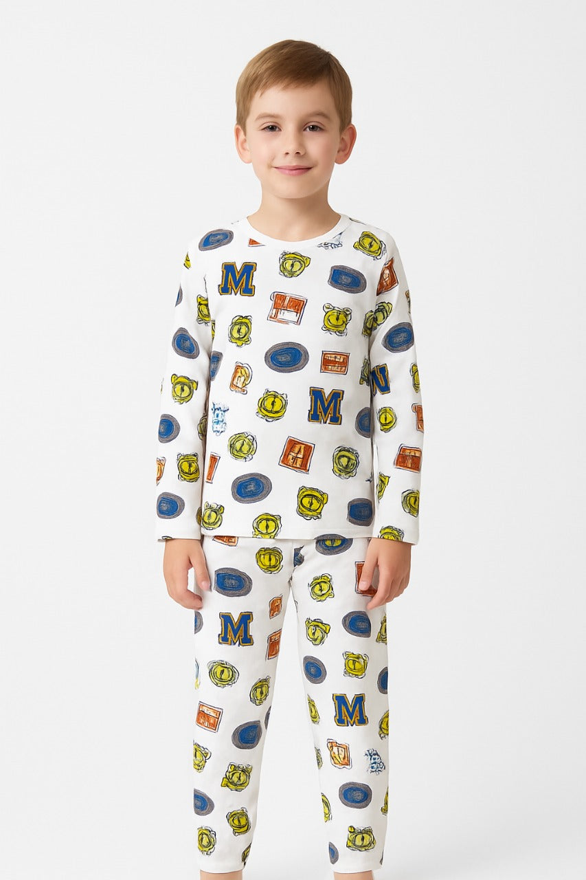 Kids Cotton Geometric Pajama Set – Long Sleeve Top & Bottom