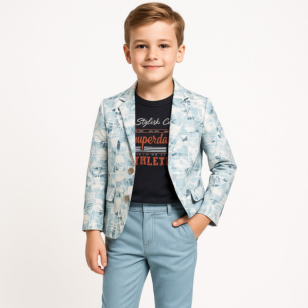Baby Boys Sky Blue Blazer Set Online - 3-Piece Outfit