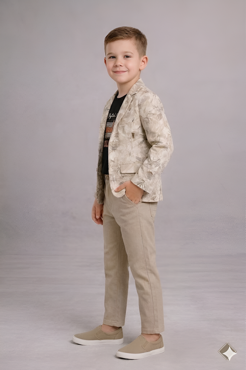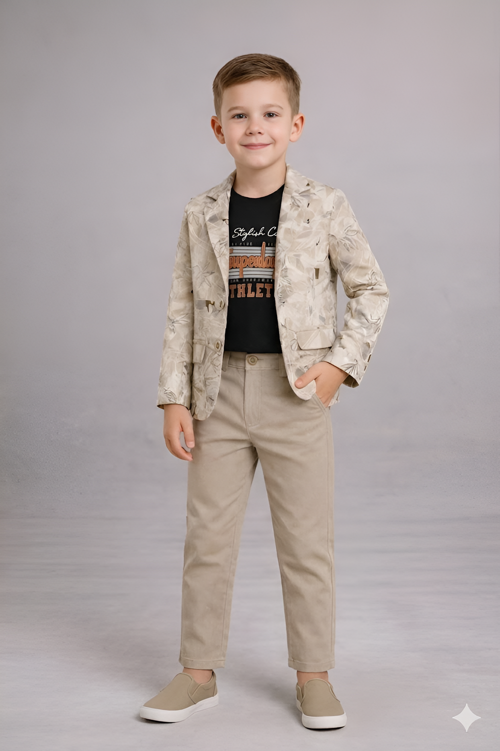 This outfit transitions seamlessly from casual to formal settings. Pair it with sneakers for a laid-back vibe, or with loafers for a dressier occasion. The blazer can even be worn separately with jeans or shorts, making it a versatile piece for any boy's wardrobe.